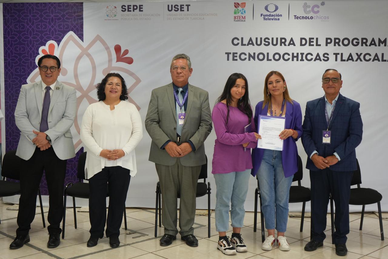 La Secretaría de Educación Pública del Estado (SEPE), la Unidad de Servicios Educativos de Tlaxcala (USET) y la Universidad Politécnica de Tlaxcala (UPTx) clausuraron el cuarto bloque del programa “Tecnolochicas Tlaxcala”, que benefició en esta edición a 100 alumnas de entre 12 y 17 años, provenientes de escuelas públicas y privadas del estado.