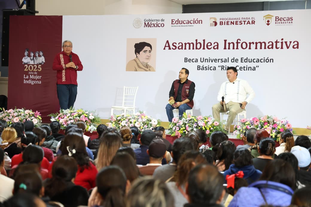 Con el objetivo de detallar el procedimiento para la incorporación a la Beca Universal de Educación Básica “Rita Cetina” para estudiantes de secundaria de escuelas públicas, los titulares de la Secretaría de Educación Pública del Estado y de la Unidad de Servicios Educativos del Estado de Tlaxcala (SEPE-USET), Homero Meneses Hernández y de Becas para el Bienestar Benito Juárez, Julio León Trujillo, encabezaron la asamblea informativa, dirigida a tutores, padres y madres de familia.