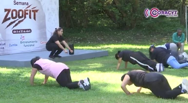 En la sesión de este jueves del programa “Zoo Fit”, las y los asistentes realizaron ejercicios de entrenamiento funcional para mejorar la fuerza, el equilibrio y la coordinación.