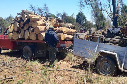 Asegura SSC camioneta y remolque con material forestal en San Luis Teolocholco