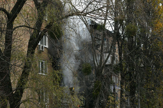 Un corresponsal de Reuters que llegó al lugar de los hechos después del ataque dijo que unos 15 residentes se habían reunido alrededor del lado humeante de un bloque de departamentos de cinco pisos.