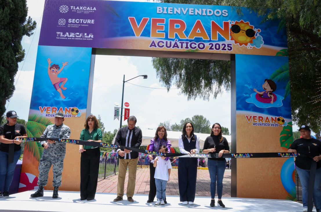 La gobernadora Lorena Cuéllar encabezó la inauguración de este espacio, donde las familias tlaxcaltecas podrán disfrutar de albercas, juegos, inflables y demás actividades.