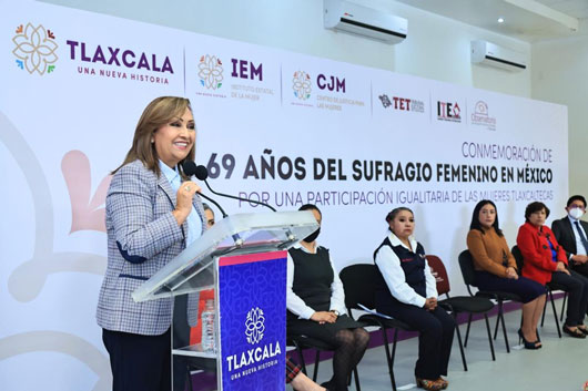 La gobernadora Lorena Cuéllar Cisneros encabezó la ceremonia conmemorativa por los 69 años del sufragio femenino en México “Por una participación igualitaria de las mujeres tlaxcaltecas”, donde reiteró su respaldo a este sector de la población para brindarles mayores oportunidades.