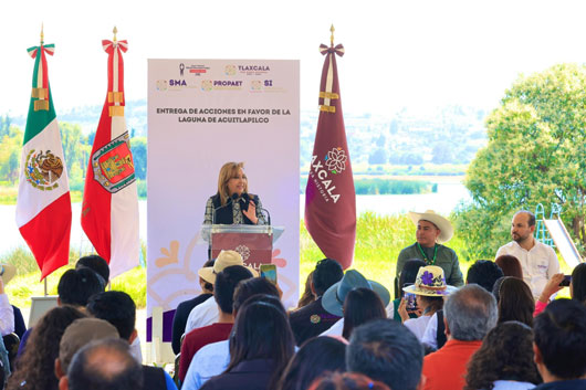 La gobernadora Lorena Cuéllar Cisneros entregó acciones de desazolve y delimitación realizadas en un perímetro de 5 kilómetros de rivera de la laguna de Acuitlapilco, mejor conocida como “Xochitototla”, trabajos realizados en una primera etapa.